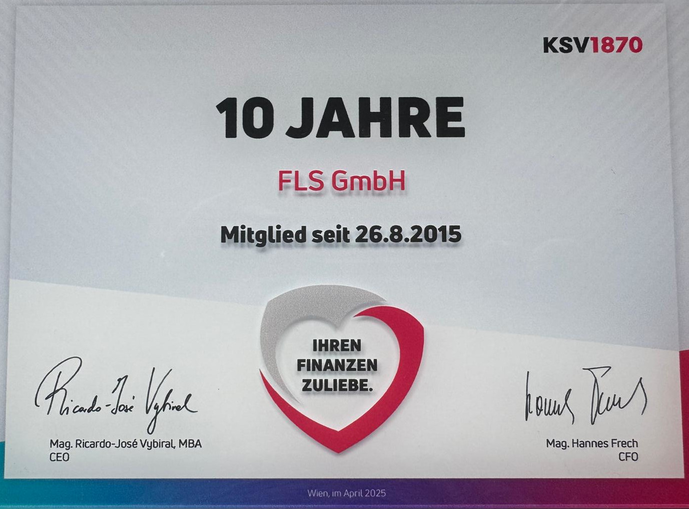 Wir freuen uns über das 10-jährige Jubiläum unserer verlässlichen Partnerschaft mit dem KSV-1870